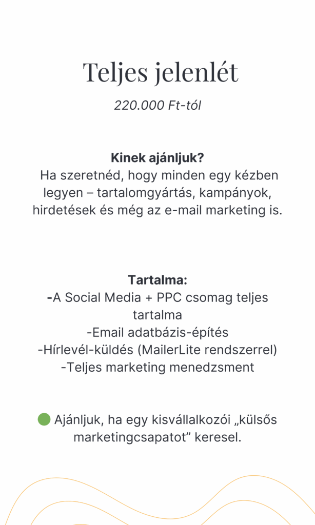 Tudjuk, mennyi feladattal jár a folyamatos online jelenlét. Ha szükséged van rendszerre, támogatásra és kreatív tartalomra, itt a helyed! Válassz csomagjaink közül – mi minden hónapban Veled leszünk.